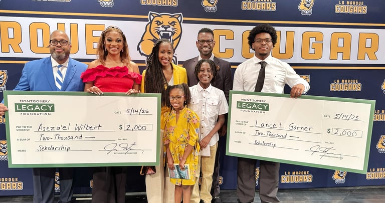 In our inaugural 2025 giving season, The Montgomery Legacy Foundation proudly awarded $2,000 scholarships to five outstanding students from Boyd Anderson High School and LaMarque High School — the alma maters of our founders, Josh and Thandi Montgomery.